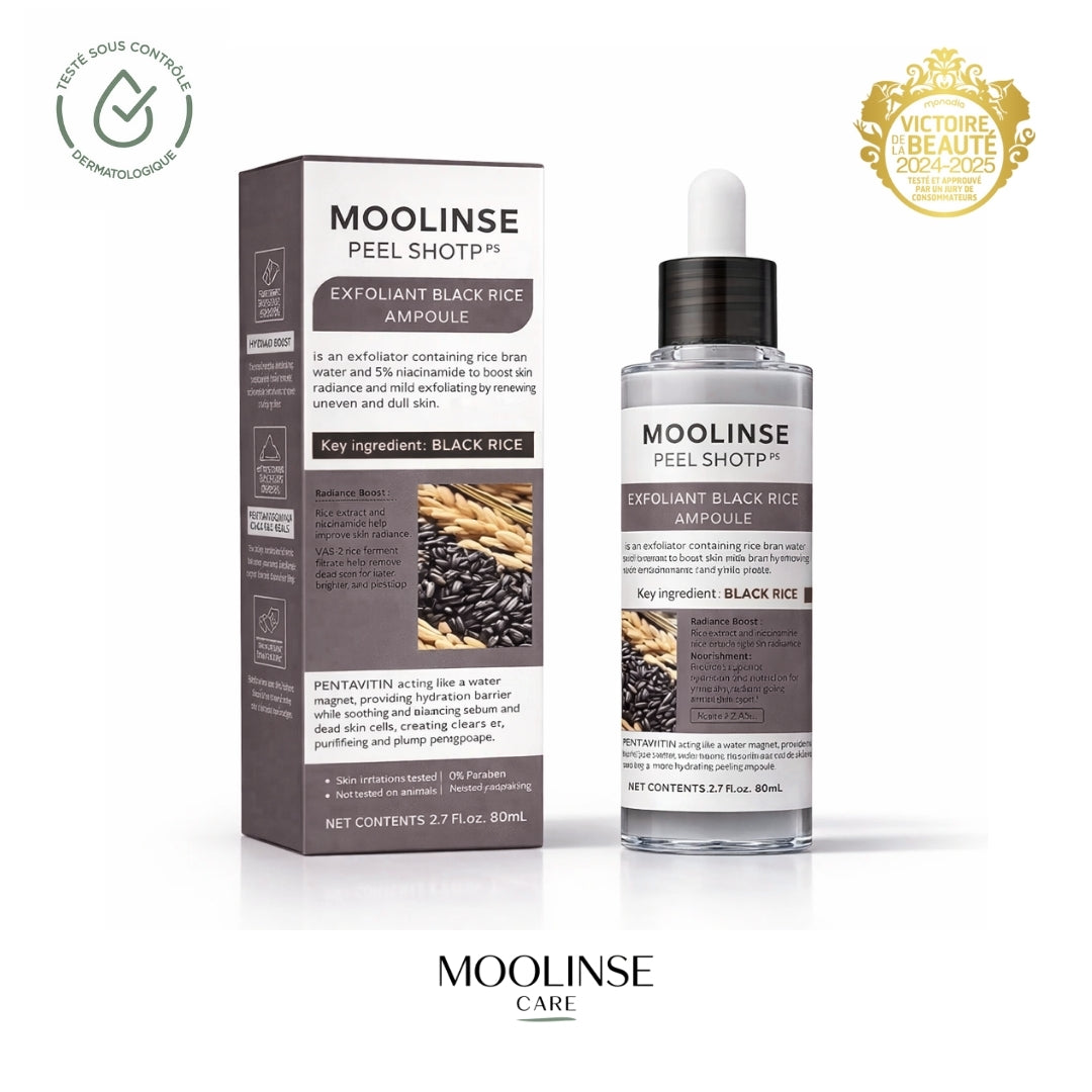 Là où d’autres produits irritent, décapent ou assèchent, Moolinse exfolie en profondeur tout en respectant l’équilibre de votre peau.